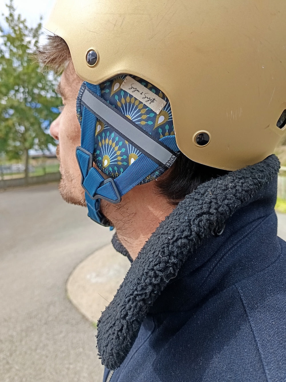 Il suffit de coller les scratchs fournis à l’intérieur du casque (au-dessus des oreilles), puis d’y attacher les cache-oreilles. Les sangles du casque se glissent dans la bande réfléchissante pour un maintien parfait.