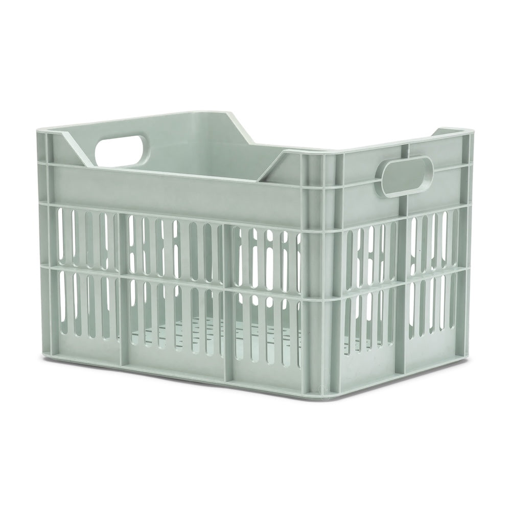 La caisse est fabriquée à partir de plastique 100 % recyclé, ce qui garantit à la fois sa légèreté et sa solidité, tout en respectant une logique de production durable.
