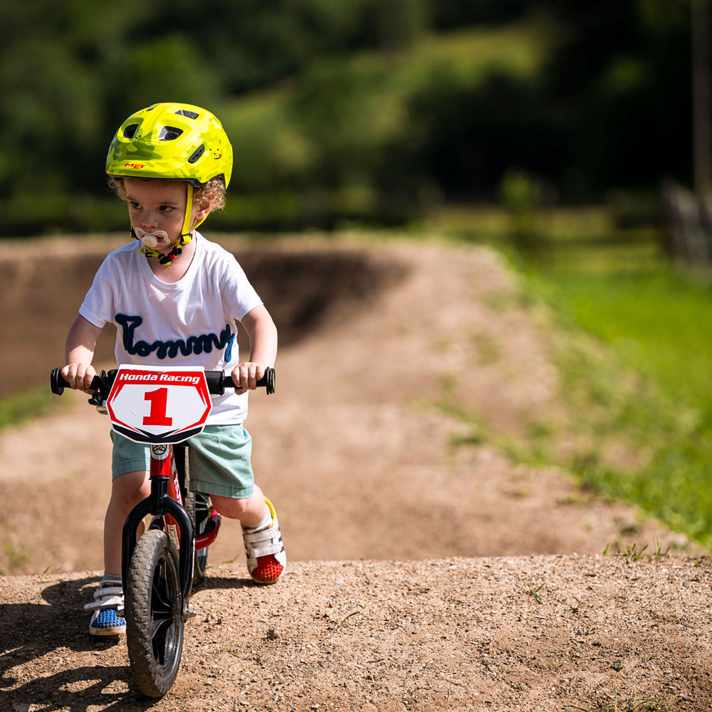 Le casque est conçu pour les jeunes enfants, notamment pour leurs premières sorties à vélo ou en siège vélo, avec une protection adaptée aux têtes en développement.