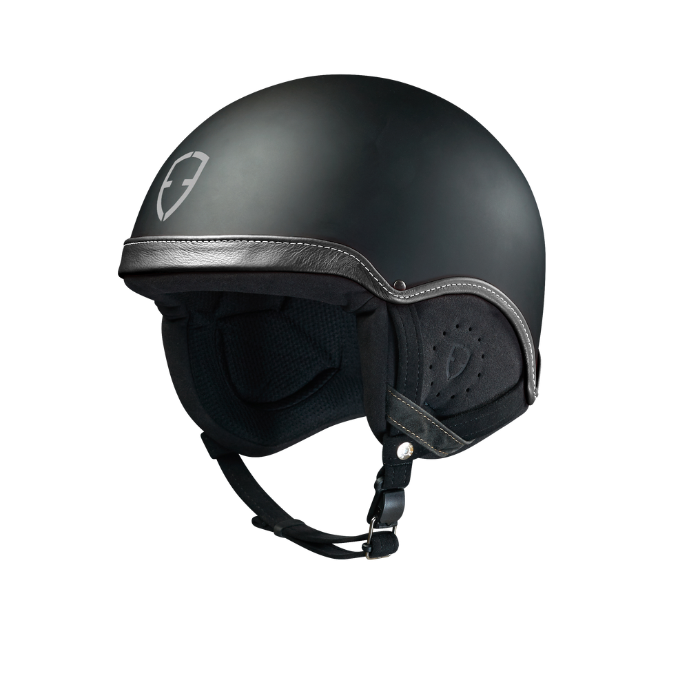La coque en résine s’habille d'un jonc en cuir qui fait le tour du casque pour apporter la touche de raffinement à la française.