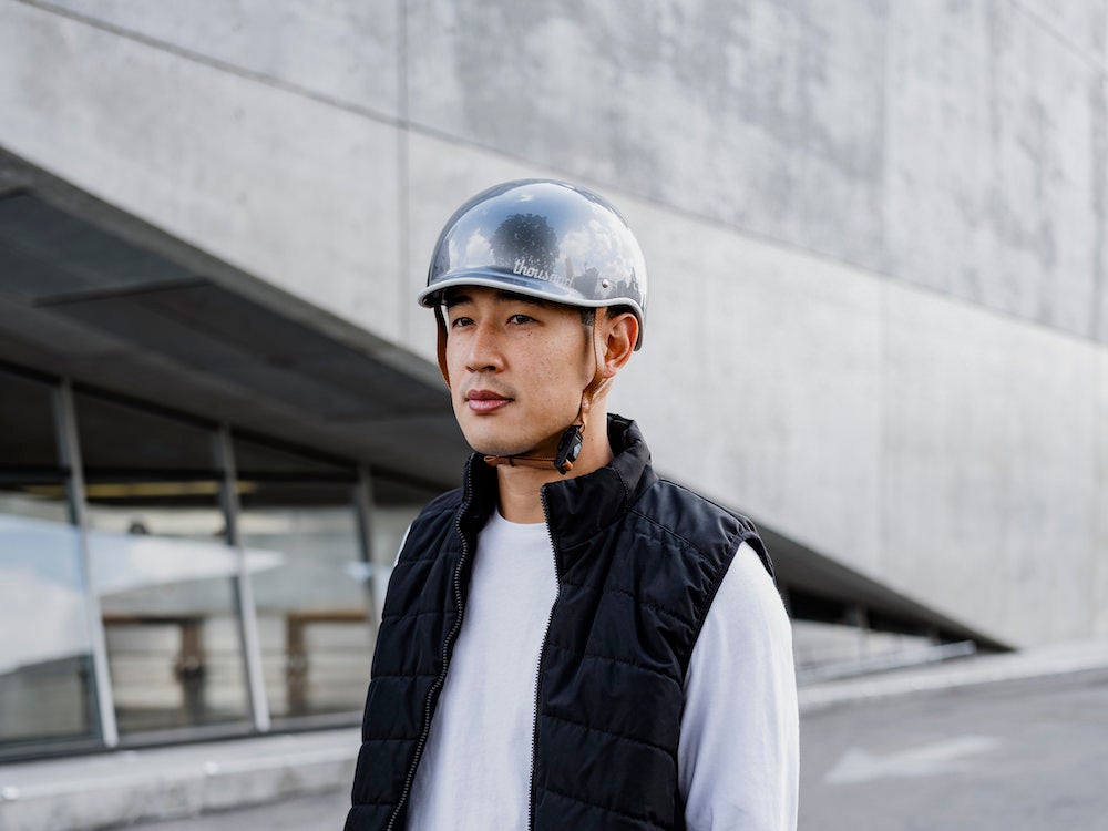 Casque vélo vintage Thousand Heritage polished titanium vue poplock