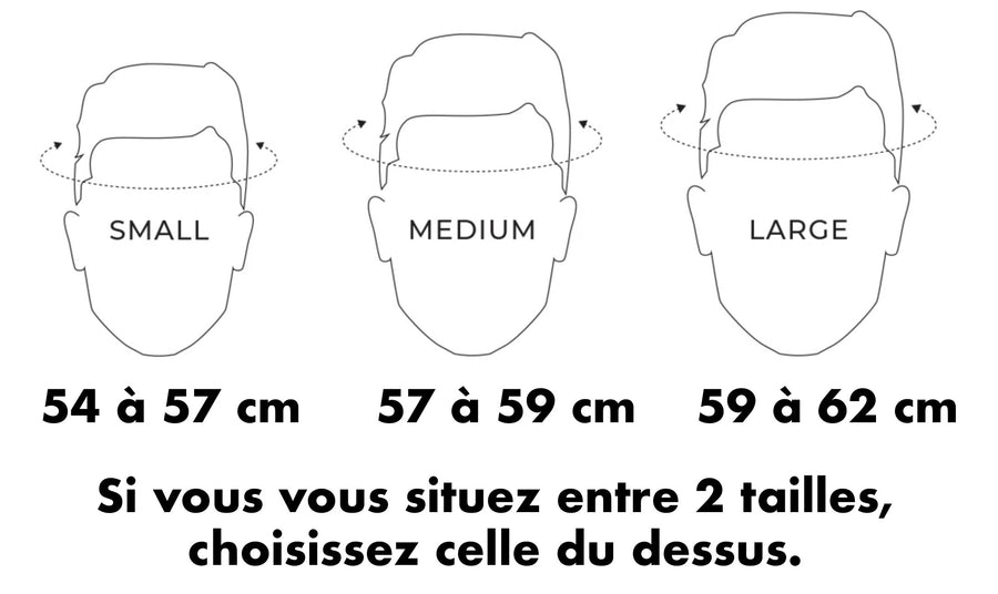 Le casque Thousand Heritage est disponible en plusieurs tailles : Small (54-55 cm), Medium (56-57 cm), et Large (58-59 cm). Il est important de mesurer votre tour de tête avec un mètre ruban pour choisir la taille qui vous convient.