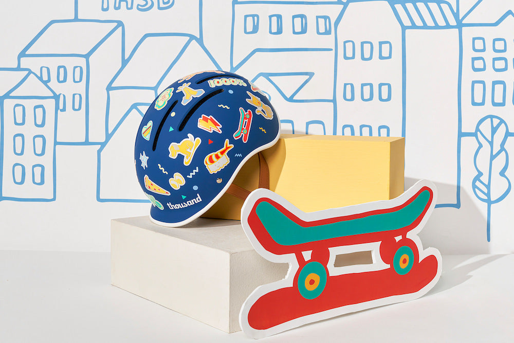 • Casque vélo enfant vintage Thousand bleu stickers collés