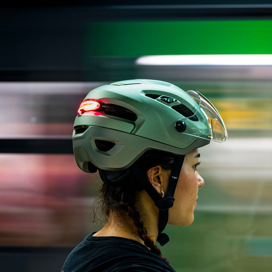 Le casque intègre une lumière LED arrière magnétique rechargeable par USB avec plusieurs modes, ainsi qu’un élément réfléchissant pour renforcer la visibilité en conditions urbaines.