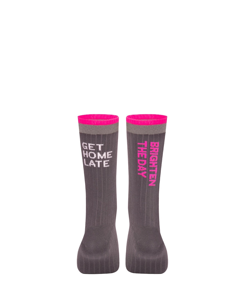 Ces chaussettes mi-mollet ont été pensées pour accompagner chaque moment de la journée, du matin jusqu’à la nuit. Leur design associe une esthétique joyeuse à des messages inspirants placés à l’arrière de la jambe, pour garder le sourire et l’énergie à chaque pas, que ce soit à vélo ou à pied.