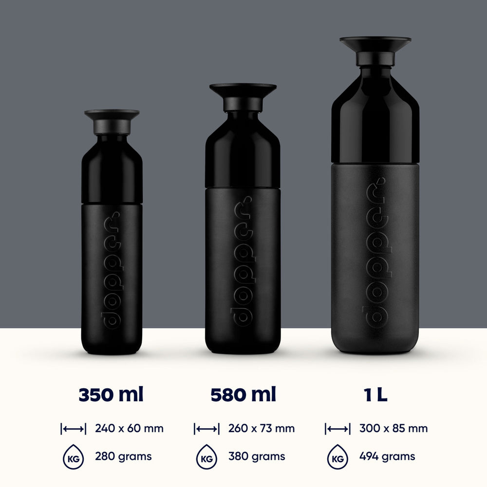 La Dopper Insulated est disponible en deux capacités : 350 ml pour un format compact et léger, et 580 ml pour une plus grande autonomie tout au long de la journée.