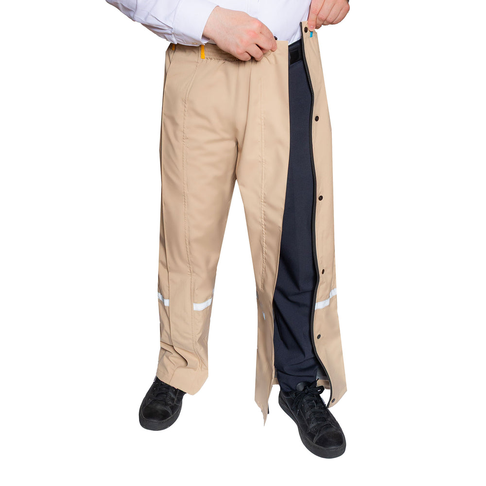 Grâce à ses fermetures éclair imperméables double sens sur toute la longueur, ce pantalon s’enfile facilement sans retirer ses chaussures. Il est doté d’un rabat magnétique, d’une taille élastique et de détails réfléchissants placés sur les deux jambes pour plus de sécurité. Les coutures étanchées renforcent la protection contre l’eau, et la coupe ajustée garantit confort et liberté de mouvement.