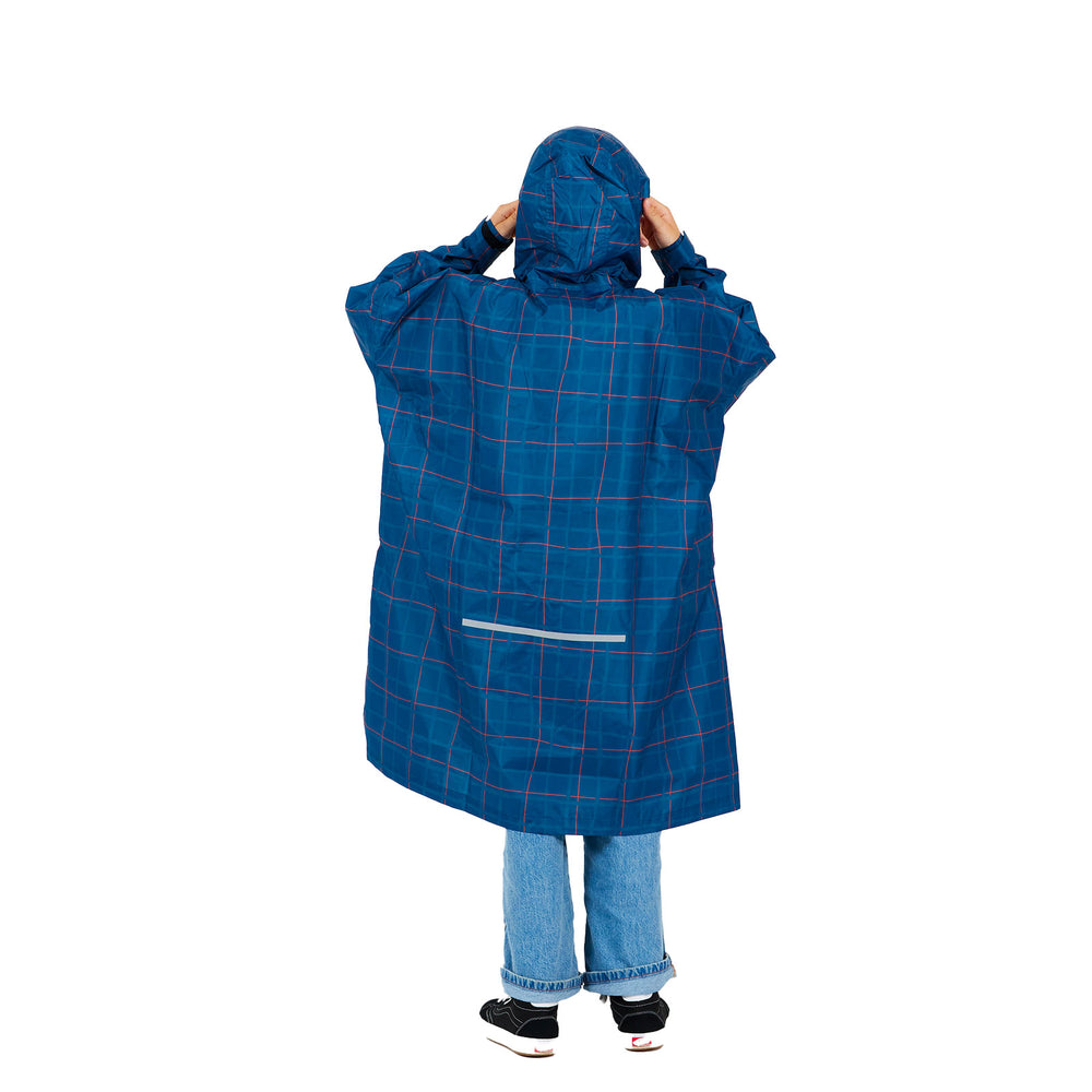 Fabriqué à partir de polyester 100% recyclé, ce poncho reflète un engagement fort envers la protection de l’environnement. Léger et compact, il se replie facilement dans sa poche kangourou réversible, facilitant son transport et son rangement une fois l’averse passée.