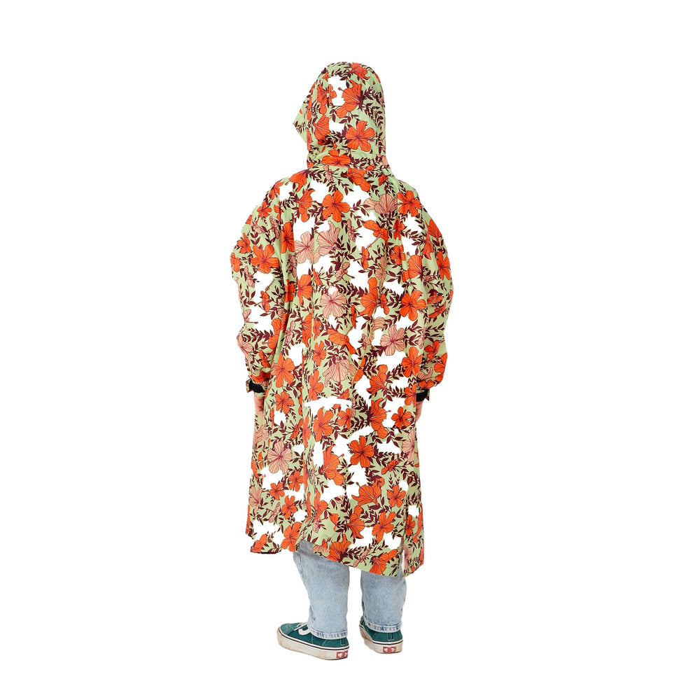 Les bandes réfléchissantes intégrées augmentent votre visibilité, assurant une sécurité accrue lors de conditions de faible luminosité. Le design aux tons pastel et aux motifs de fleurs d’hibiscus, inspiré de la côte nord de l’île d’Oahu, apporte une touche de gaieté à vos journées pluvieuses.