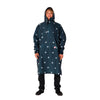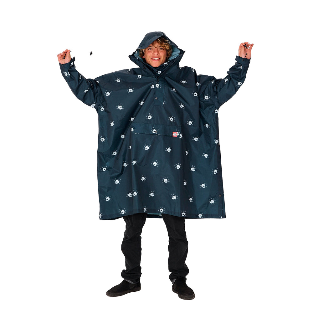 Fabriqué à partir de polyester 100% recyclé, ce poncho reflète un engagement fort envers la protection de l’environnement. Léger et compact, il se replie facilement dans sa poche kangourou réversible, facilitant son transport et son rangement une fois l’averse passée.