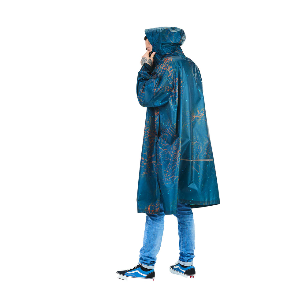 Fabriqué à partir de polyester 100% recyclé, ce poncho reflète un engagement fort envers la protection de l’environnement. Léger et compact, il se replie facilement dans sa poche kangourou réversible, facilitant son transport et son rangement une fois l’averse passée.