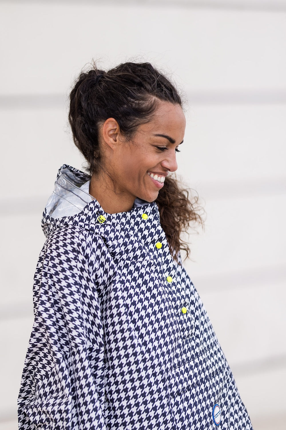 • Poncho de Pluie Imperméable - Le Temps des Grenouilles Pied de Poule Noir/Jaune