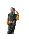Le poncho mesure 110 cm de hauteur et 82 cm de largeur. Il est conçu pour convenir à toutes les morphologies adultes, femmes comme hommes.