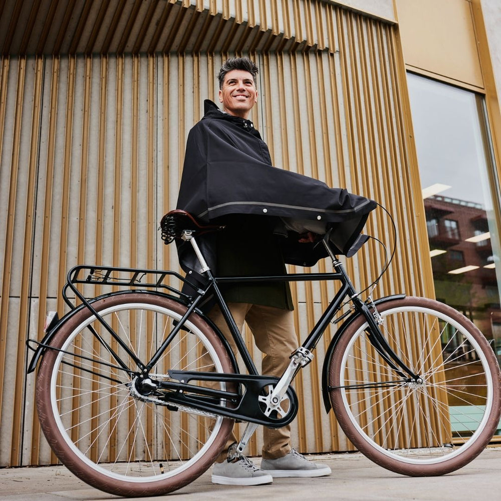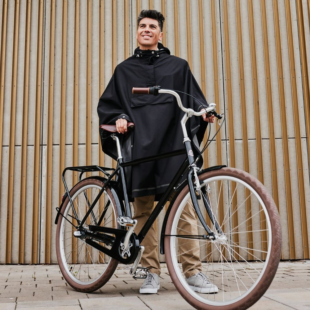 Le modèle Imbris intègre des languettes pour les mains et une ceinture de maintien, permettant de pédaler sans que le poncho ne flotte au vent. Une poche de rangement intégrée facilite son transport après usage. Disponible en tailles S, M et L, il se décline en plusieurs coloris (vert, noir, cuivre et bleu).