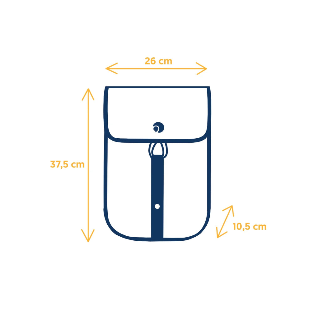 Avec son format 12L, ce sac est parfait pour transporter vos affaires essentielles : ordinateur 13 pouces, gourde, clés, téléphone, documents. Il dispose d’une grande ouverture zippée sous le dos, de poches pratiques et d’un compartiment rembourré pour ordinateur. Sa toile extérieure imperméable protège efficacement vos objets, même sous la pluie.