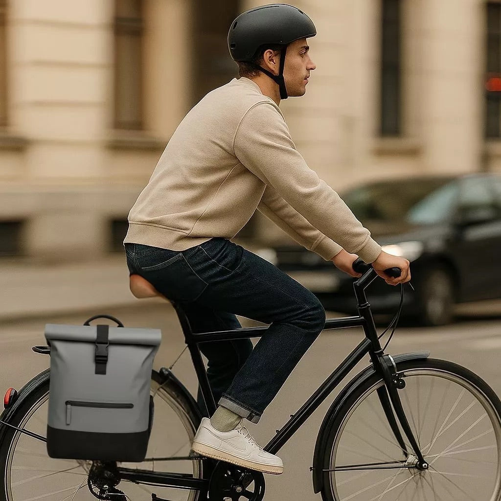 Le sac Anna 2-en-1 a été pensé pour celles et ceux qui se déplacent à vélo au quotidien. Grâce à un système ingénieux de crochets dissimulés sous un rabat aimanté, il se fixe facilement sur votre porte-bagages arrière. Une fois arrivé à destination, il se transforme en sac à dos avec ses bretelles rembourrées, sans compromis sur l’esthétique ou le confort.