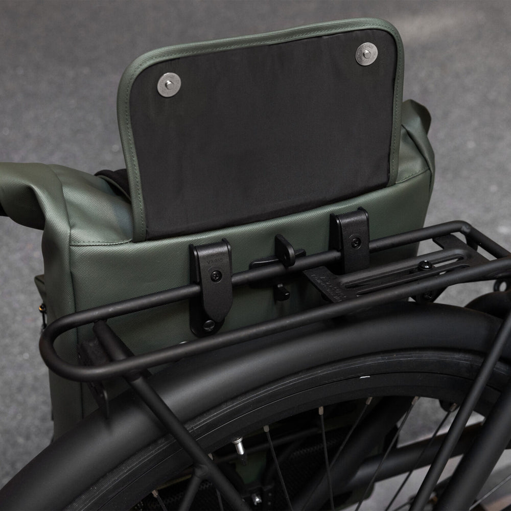Ce sac est fabriqué à partir de matériaux durables, choisis pour résister à une utilisation intensive au quotidien. Le système de fixation se clipse facilement sur le porte-bagages arrière du vélo, sans risque de balancement. Et une fois à destination, le sac peut être porté à la main ou à l’épaule pour plus de praticité.