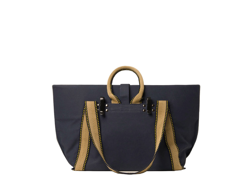 Le modèle Etincelle se transforme en sacoche vélo ou sac à main pour transporter l'ensemble de vos affaires ou de faire vos courses à vélo.