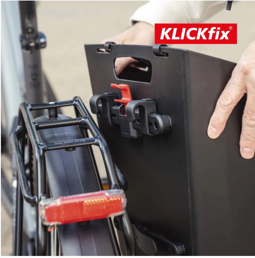 Grâce au système Klickfix Kompakt Rail, la sacoche s’attache et se détache facilement du porte-bagages. Son troisième point d’ancrage, le Lower Rail, assure une stabilité parfaite et limite les vibrations pendant le trajet. Compatible avec les porte-bagages de 8 à 16 mm de diamètre, elle s’adapte à la majorité des vélos.