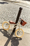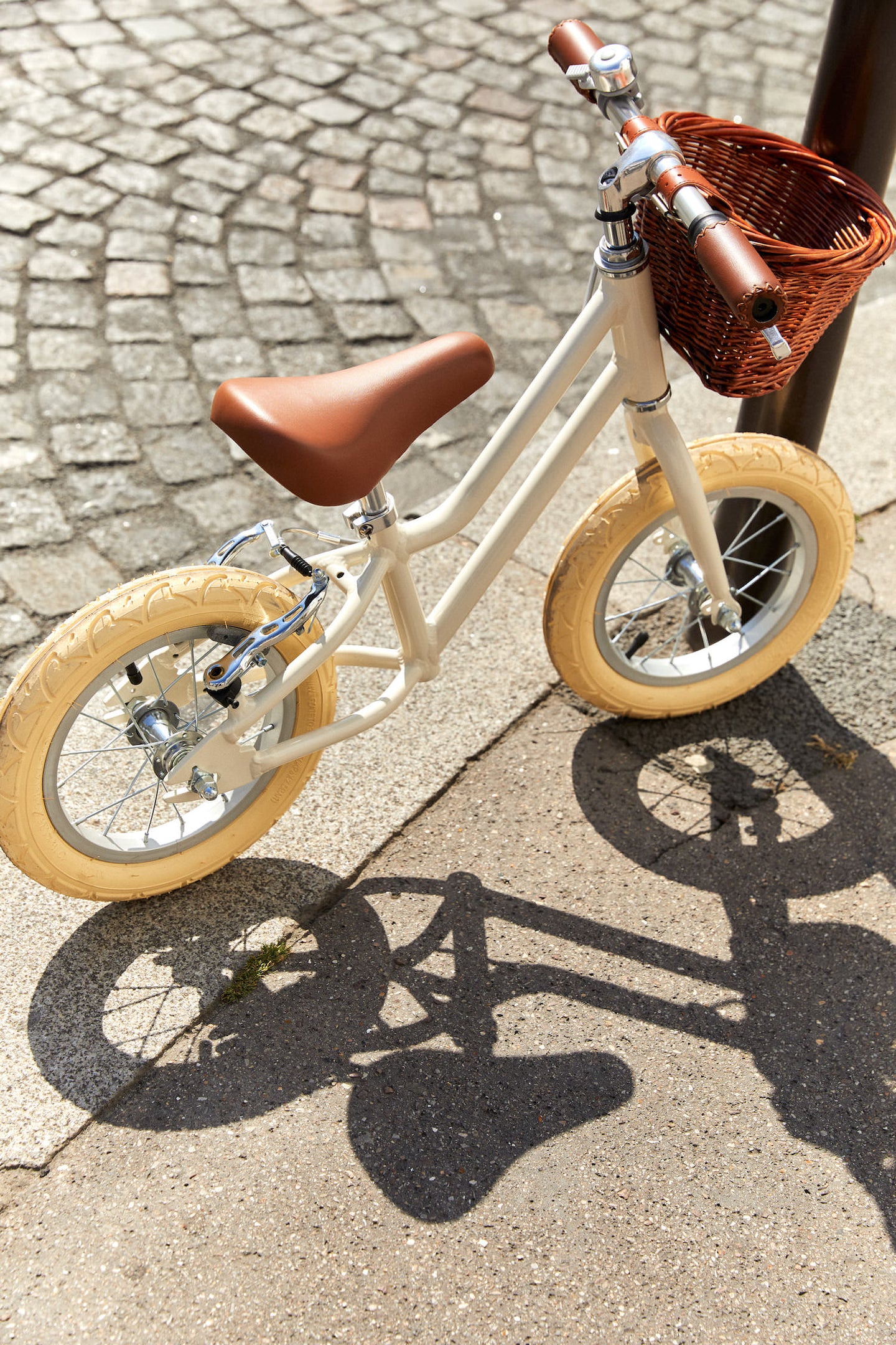 Le panier en osier est solide et bien fixé à l’avant. Il peut être retiré facilement si vous préférez utiliser la draisienne sans accessoire.